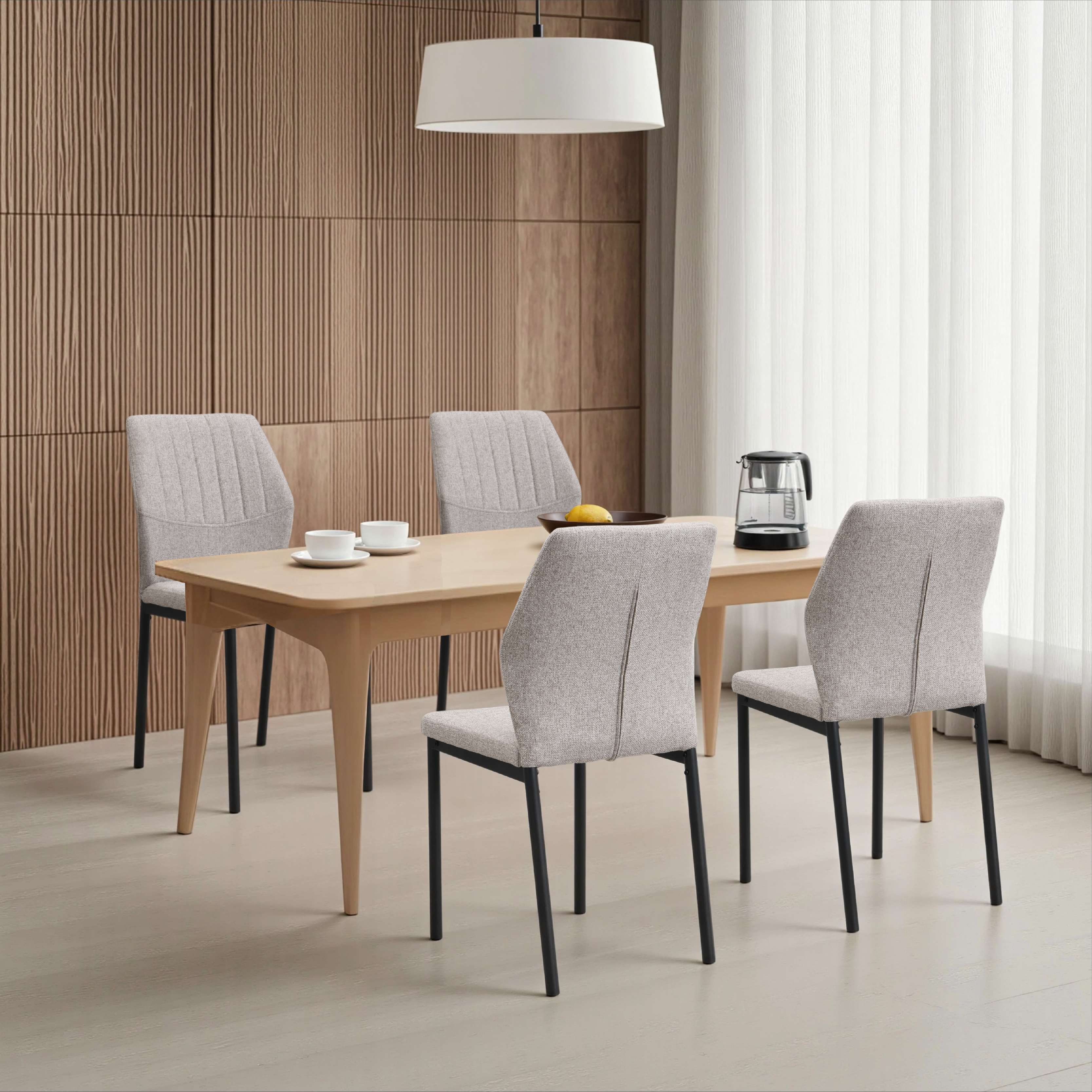 Mid-Century Modern Beige Upholstered Dining Chair 2Pecs