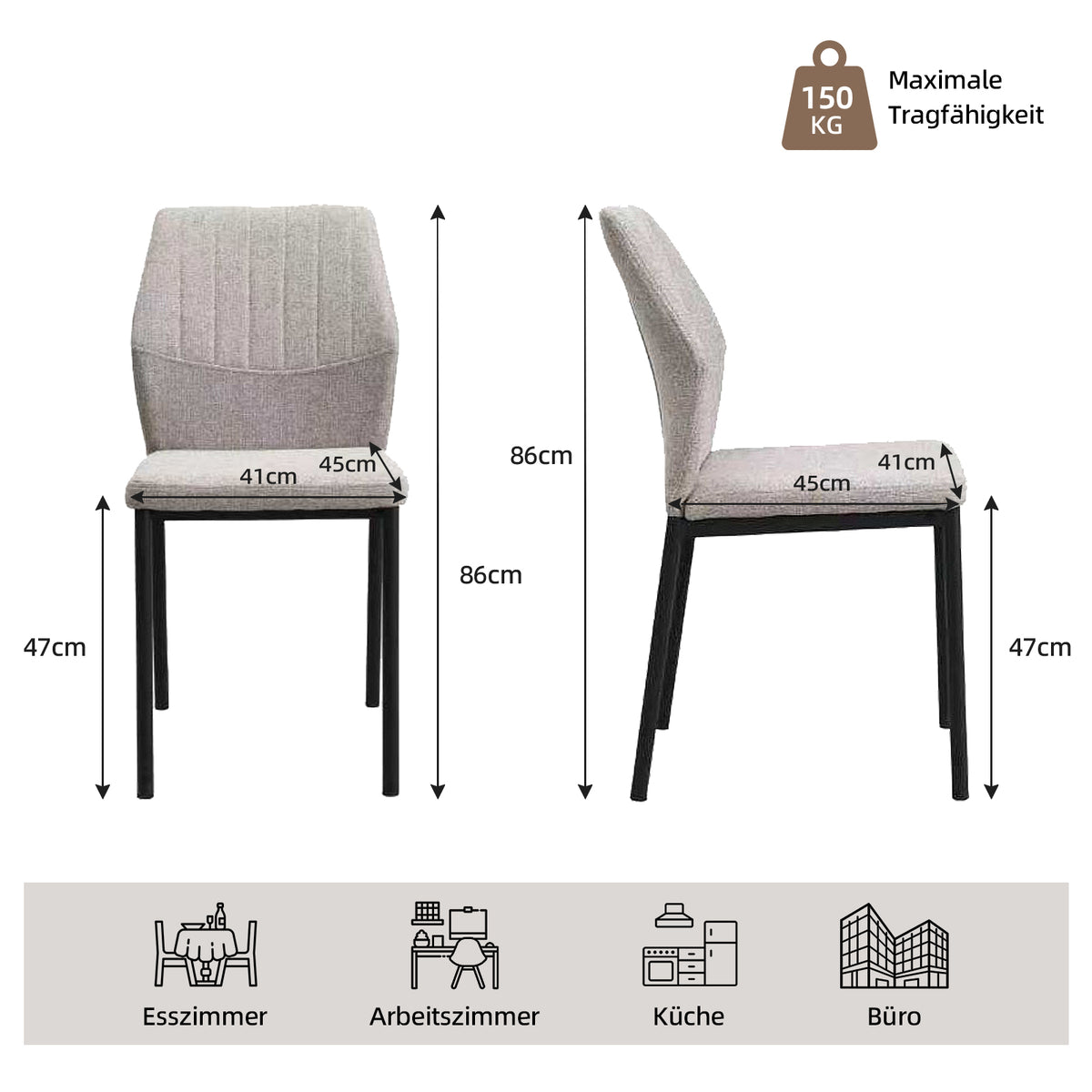 Rust-resistant legs, 150kg load capacity