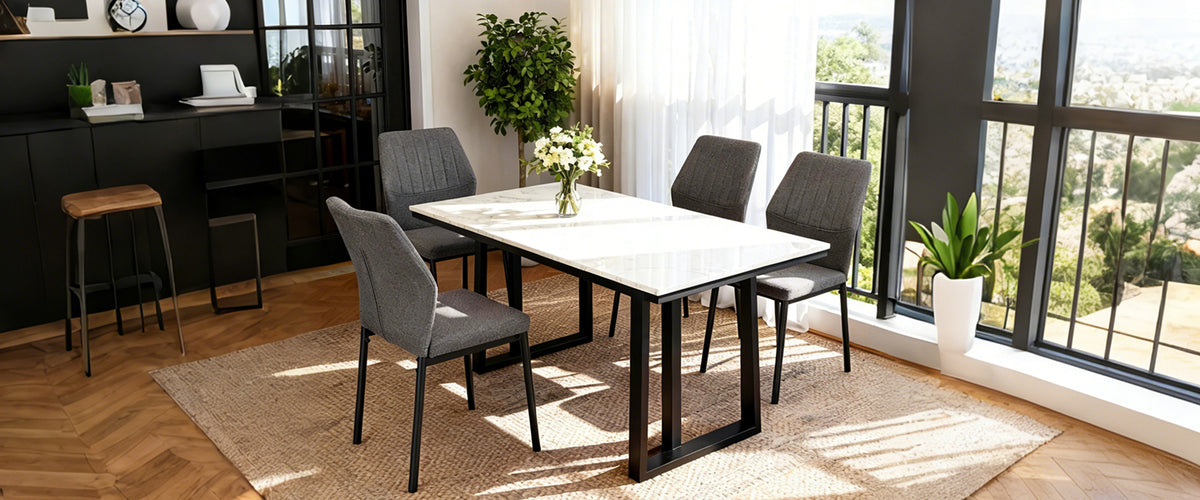 Durable dining chair with 150kg weight capacity and rust-resistant frame.